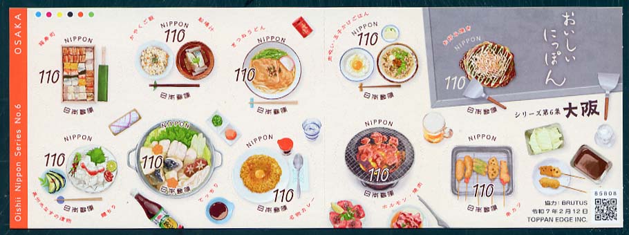 | C2610 | おいしいにっぽんシリーズ第6集(85円) | 850 | (a〜j)のシール式10枚シート | 20252.12 | オフセット | 6色 | (裏面) | 80 | シール式 | ||||