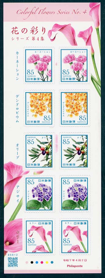 | C2632 | 花の彩りシリーズ第5集(85円) | 850 | (a×2、b×2、c×2、d×2、e×2)のシール 式 10 枚 シート | 2025.10.15 | オフセット | 6色 | 60 | シール式 | |||||