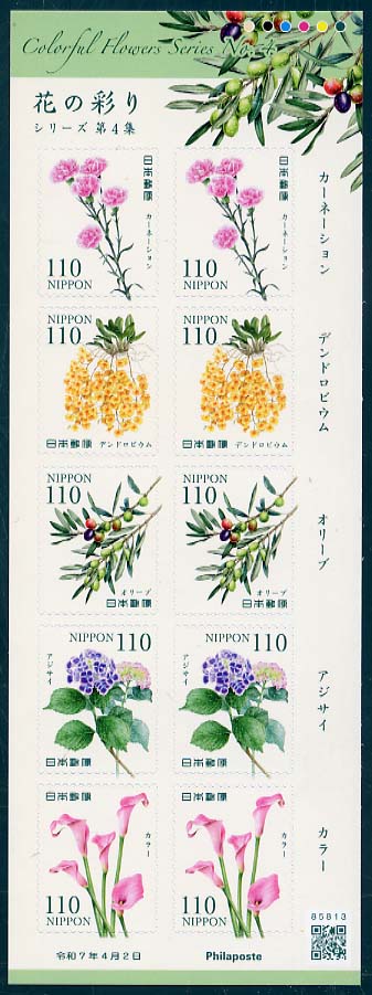 | C2633 | 花の彩りシリーズ第5集(110円) | 1100 | (a×2、b×2、c×2、d×2、e×2)のシール 式 10 枚 シート | 2025.10.15 | オフセット | 6色 | 80 | シール式 | |||||