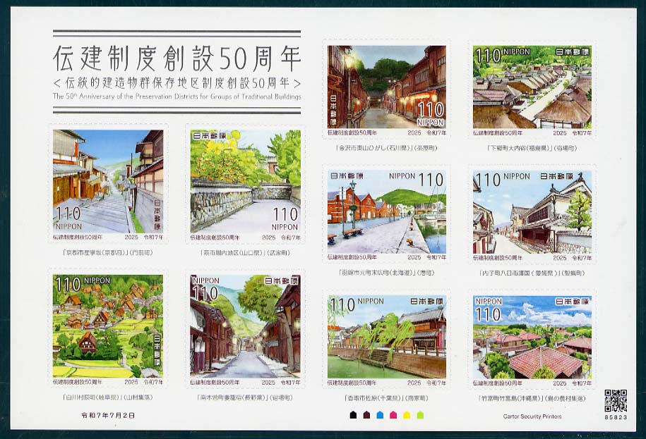 C2621 | 伝建制度創設50周年(伝統的建造物群保存 | 1100 | (a〜j)のシール 式 10 枚 シート | 2025.7.2 | オフセット | 6色 | 50 | シール式 | |||||