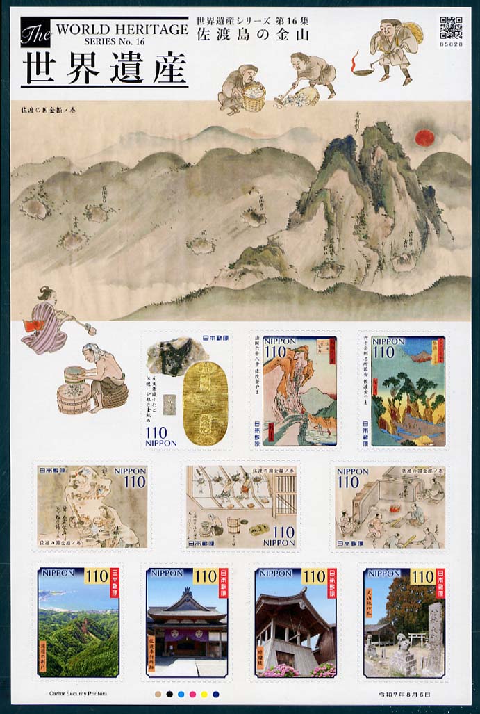 C2625 | 世界遺産シリーズ(第16集)「佐渡島の金山」 | 1100 | (a〜j)のシール 式 10 枚 シート | 2025.8.6 | オフセット | 6色 | 35 | シール式 | |||||