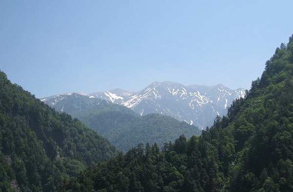 竪坑エレベーターで、欅平上部まで一気に200m昇り、降りると展望台があって、後立山連峰や鹿島槍ヶ岳を