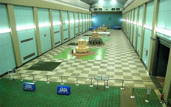 発電所内部を見学させてもらいましたが、4基の水車がフル稼働でした。