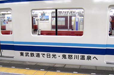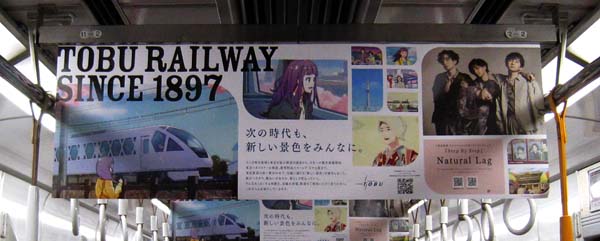 車内には、東武沿線にある栃木の鬼怒川温泉や日光といった観光地の広告が掲示され、奈良線や京都線、